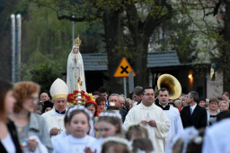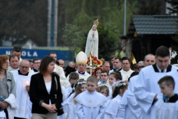 Dopełnieniem dziękczynnej uroczystości była procesja różańcowa. Kapłani oraz wierni, trwając w śpiewnej modlitwie, podążali wraz z Panią Fatimską osiedlowymi uliczkami. Kościół katolicki zyskał świętych orędowników, zaś dla naszej archidiecezji, w której ku ukończeniu zmierzają prace budowlane nad powstającym Sanktuarium Dzieci Fatimskich, stanowi to dodatkowy i szczególny duchowy zadatek.