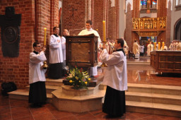 Uroczyste zamknięcie Roku Wiary w naszej Archidiecezji odbyłom się w Bazylice Archikatedralnej w Szczecinie, w sobotę, 23 listopada 2013 r. o godz. 11:00. Mszy Świętej przewodniczył Ksiądz Arcybiskup Andrzej Dzięga, Metropolita Szczecińsko-Kamieński, który przyjał od przedstawiciele parafii naszej Archidiecezji Parafialne Księgi Wiary z wpisami świadect wiernych. Każda parafia otrzymała też obraz błogosławionego Jana Pawła II, w oczekiwaniu na Jego kanonizację. Księgi Wiary powrócą do wspólnot parafialnych ze spacjalnym uroczystym błogosławieństwem Księdza Arcybiskupa jako świadectwo podjęcia pielgrzymki wiary w tym niezwykłym roku. Na zakończenie liturgii uroczyste ślubowania złożyli nowi członkowie Akcji Katolickiej oraz Katolickiego Stowarzyszenia Młodzieży.