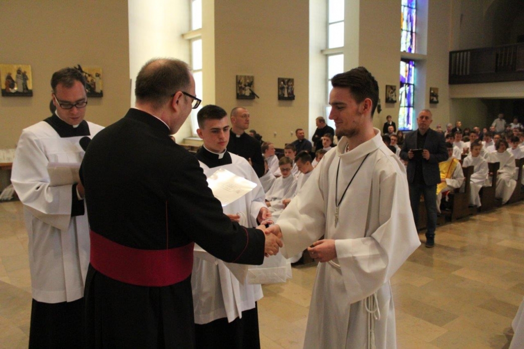 W sobotę przed niedzielą Jezusa Chrystusa Dobrego Pasterza, 21 kwietnia 2018 r., w szczecińskim seminarium duchownym odbył się Dzień Jedności Liturgicznej Służby Ołtarza. W czasie Eucharystii, która rozpoczęła całe spotkanie, Ksiądz Biskup Henryk Wejman udzielił promocji lektorskiej i ceremoniarskiej ministrantom naszej Archidiecezji. Po uroczystej Mszy świętej każdemu z nowo promowanych został wręczony dokument potwierdzające przyjęcie promocji lektora lub ceremoniarza do posługi w parafii. Po uroczystościach miało miejsce wspólne spotkanie piknikowe na terenie seminaryjnym.
