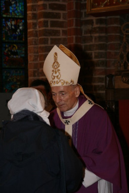 Po uroczystej mszy św z okacji 50 lat kapłaństwa, abp Zygmunt Kamiński odbierał gratulacje od władz wojewódzkich, miejskich i służb mundurowych oraz indywidualne życzenia od licznych wiernych - 17.12.2006 katedra szczecińska