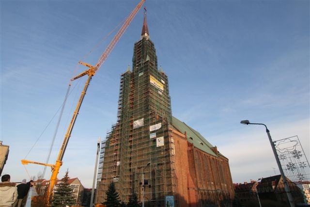 12 stycznia o godz. 12:40 rozpoczęto operację wciągania ważącego 26 ton hełmu na wieżę szczecińskiej katedry przy pomocy nowoczesnego dźwigu samobieżnego Liebherr LTM 1500-8.1