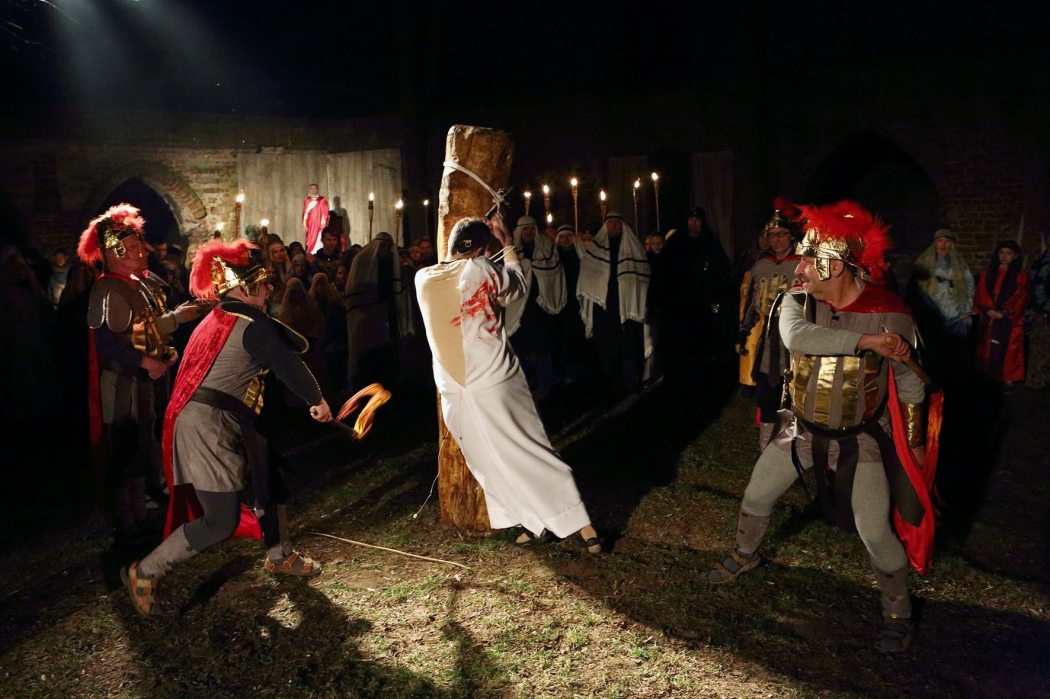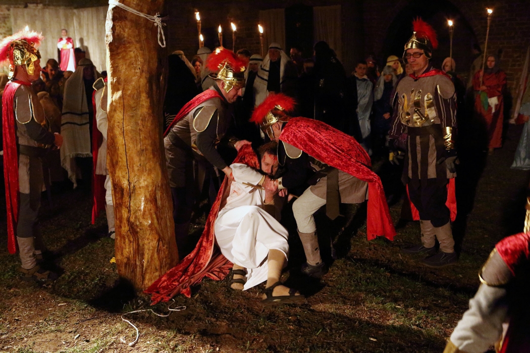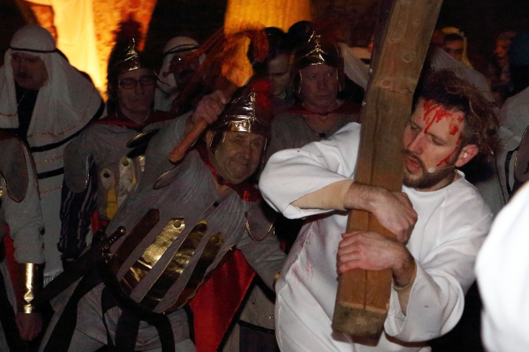 Jak co roku w Niedzielę Palmową odbyło się w Policach-Jasienicy Misterium Męki Pańskiej. Misterium zostało przygotowane we współpracy ze Zespołem Szkół nr 2 w Policach-Jasienicy. W postaci biblijne wcielili się uczniowie, młodzież, samorządowcy, anonimowi alkoholicy, młodzież z Ośrodka Wychowawczego w Trzebieży, wolontariusze. Fot. A. Joniak