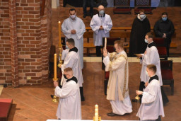 W wielkoczwartkowy wieczór w Bazylice Archikatedralnej pw. św. Jakuba Apostoła w Szczecinie odprawiona została - w warunkach epidemicznych ograniczeń - Msza Wieczerzy Pańskiej. Z racji na stan epidemii, w tym roku również opuszczony został obrzęd umycia nóg. Eucharystii przewodniczył Ksiądz Biskup Henryk Wejman, a homilię wygłosił Ksiądz Arcybiskup Andrzej Dzięga. Liturgia była transmitowana przez interentową stronę Bazyliki Katedralnej katedra.szczecin.pl oraz przez Radio PLUS Szczecin.