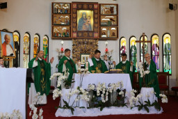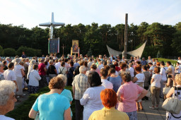 Już czwarty raz w tym roku wierni uczestniczyli w pokutnej Drodze Różańcowej w Sanktuarium Matki Bożej Królowej Pokoju w Siekierkach. Zazwyczaj procesja pokutna jest poprzedzona Mszą św. i Koronką do Miłosierdzia Bożego. Procesje pokutne odbywają się od maja do października w pierwszą niedzielę miesiąca. Intencje modlitewne procesji to modlitwa o pokój w naszych sercach, rodzinach, Ojczyźnie i na świecie; o uchronienie Polaków przed złem fizycznym i moralnym; wynagrodzenie Najświętszemu Sercu Pana Jezusa i Niepokalanemu Sercu Maryi za wszystkie grzechy świata. Procesja pokutna kończy się modlitwą na Siekierkowskim Cmentarzu Wojennym za żołnierzy poległych w czasie II wojny światowej. W sierpniowej procesji pokutnej wzięło udział kilkaset osób, wielu kapłanów a także grupy zorganizowane z Goleniowa, Stargardu, Dębna i Polic. Fot. Archiwum parafialne.