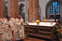 W czasie trzeciej sesji Soboru Watykańskiego II w 1964 r. biskupi polscy zwrócili się do Ojca Świętego aby ten ogłosił Najświętszą Maryję Pannę Matką Kościoła. Stało się to niedługo później. Kiedy w 1972 r. powstała Diecezja Szczecińsko-Kamieńska Najświętsza Maryja Panna Matka Kościoła stała się obok Św. Ottona z Bambergu główną patronką diecezji. W uroczystość Patronki Archidiecezji w poniedzialek po Niedzieli Zesłania Ducha Świętego uroczystej Mszy św. a Bazylice Archikatedralnej Św. Jakuba przewdodniczył Ks. Abp Andrzej Dzięga, Metropolita Szczecińsko-Kamieński. Homilię wygłosił Ks. Bp Henryk Wejman. Licznie zgromadzili się przedstawiciele ruchów i wspólnot religijnych archidiecezji. Fot. P. Górzyński
