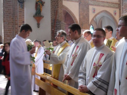 Na zakończenie Eucharystii, młodzież z Katolickiego Stowarzyszenia CivitasChristiana złożyła kapłanom życzenia obdarowując każdego księdza symboliczna białą różą.
