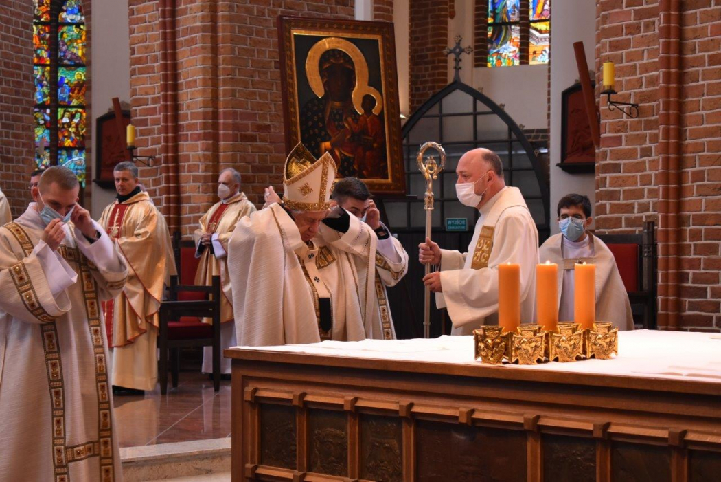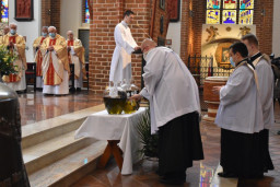 W wielkoczwartkowe przedpołudnie w Bazylice Archikatedralnej pw. św. Jakuba Apostoła w Szczecinie odprawiona została - w warunkach epidemicznych ograniczeń - Msza święta, w czasie której poświęcone zostały oleje: krzyżma, chorych i katechumenów. Z racji na stan epidemii, w tym roku wraz z Księdzem Arcybiskupem Andrzejem Dzięgą w koncelebrze wzięli udział przedstawiciele dekanatów i instytucji kościelnych Archidiecezji. Liturgia była transmitowana przez interentową stronę Bazyliki Katedralnej katedra.szczecin.pl