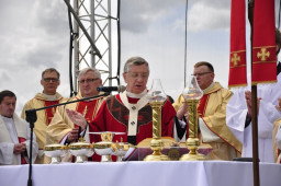 W kwietniu mija 71. rocznica forsowania Odry w ramach tzw. operacji berlińskiej która doprowadzila do zdobycia Berlina i zakończenia II wojny światowej. Wzięli w niej udział żołnierze 1 Armii Wojska Polskiego. W wyniku działań wojennych w kwietniu i maju 1 Armia Wojska Polskiego poniosła ciężkie straty. Wielu żołnierzy, często bezimiennych, spoczywa na Siekierkowskim Cmentarzu 1 Armii Wojska Polskiego. W rocznicę tych wydarzeń ks. abp A. Dzięga, metropolita szczecińsko-kamieński, odprawił przed bramą cmetarza Mszę św. Fot. M. Sim. P. Witkowski.