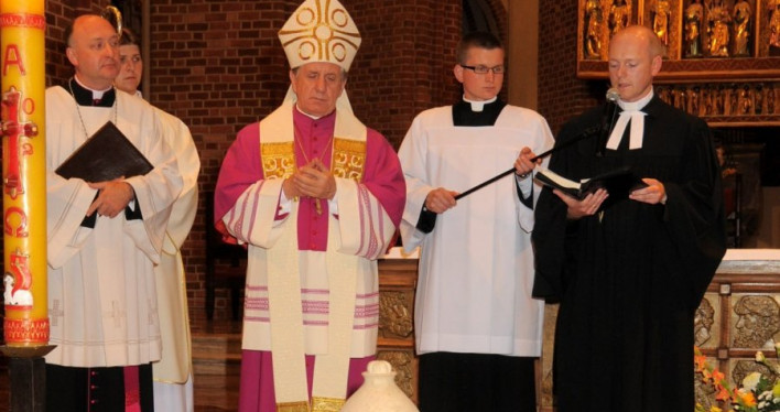 Metropolita Szczecińsko-Kamieński Ksiądz Arcybiskup Andrzej Dzięga i Proboszcz Parafii Ewangelicko-Augsburskiej ks. Sławomir Sikora przewodniczyli w niedzielę ekumenicznej liturgii złożenia urny z sercem Carla Loewego w Bazylice Archikatedralnej pw. św. Jakuba Apostoła w Szczecinie.