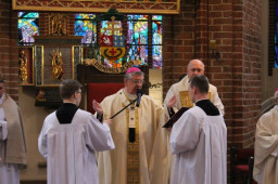 W wielkoczwartkowe przedpołudnie w Bazylice Archikatedralnej pw. św. Jakuba Apostoła w Szczecinie odprawiona została uroczysta Msza święta, w czasie której poświęcone zostały oleje: krzyżma, chorych i katechumenów. Uroczystej celebrze przewodniczył Ksiądz Arcybiskup Andrzej Dzięga, Metropolita Szczecińsko - Kamieński. We Mszy świętej uczestniczyli Biskupi naszej Archidiecezji i licznie przybyli kapłani. Na zakończenie Eucharystii, młodzież z Katolickiego Stowarzyszenia Civitas Christiana złożyła kapłanom życzenia wręczając każdemu księdzu symboliczną białą różę.