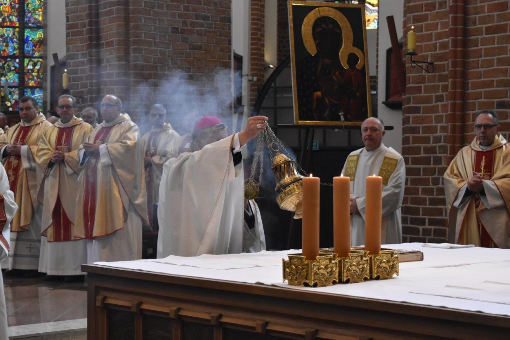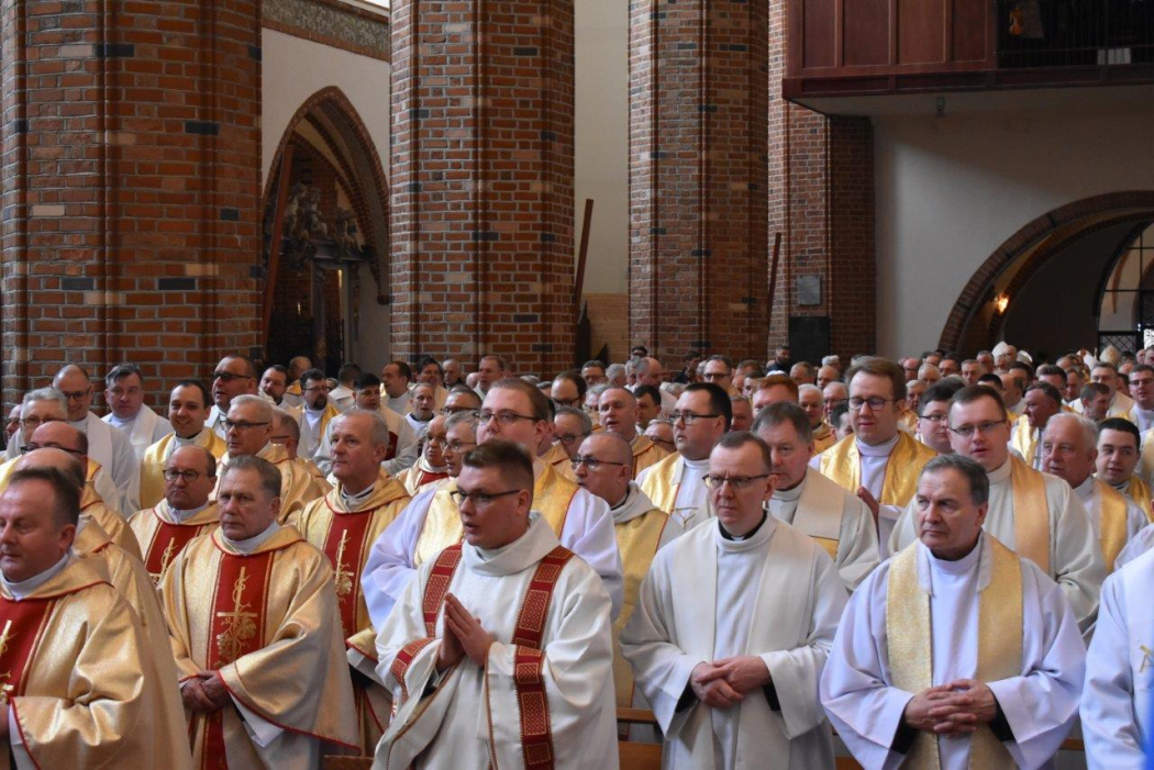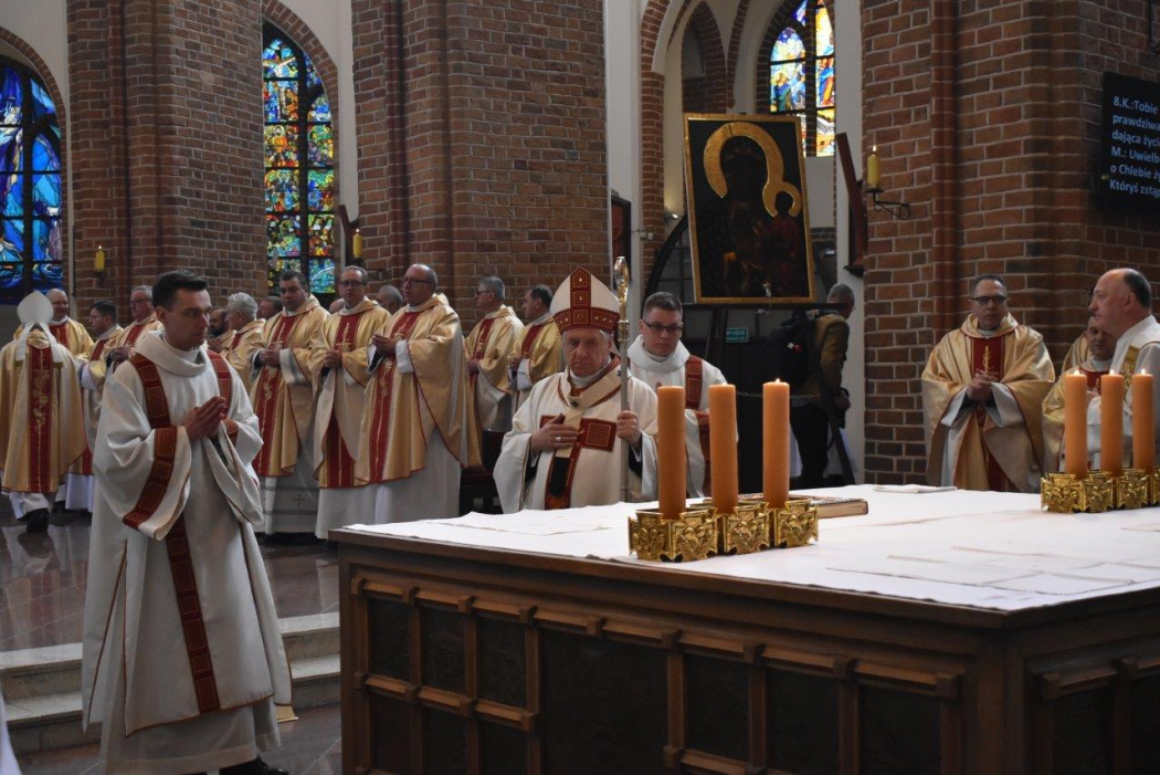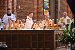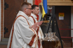 W wielkoczwartkowe przedpołudnie w Bazylice Archikatedralnej pw. św. Jakuba Apostoła w Szczecinie odprawiona została uroczysta Msza święta, w czasie której poświęcone zostały oleje: krzyżma, chorych i katechumenów. Uroczystej celebrze przewodniczył Ksiądz Arcybiskup Andrzej Dzięga, Metropolita Szczecińsko - Kamieński. We Mszy świętej uczestniczyli Biskupi naszej Archidiecezji i licznie przybyli kapłani, którzy odnowili swoje przyrzeczenia kapłańskie. Na zakończenie liturgii młodzież z Fundacji Małych Stópek złożyła ksieżom, życzenia, a przedstawiciel młodzieży z Ukrainy poprosił o modlitwę różańcową w intecji swojego kraju.