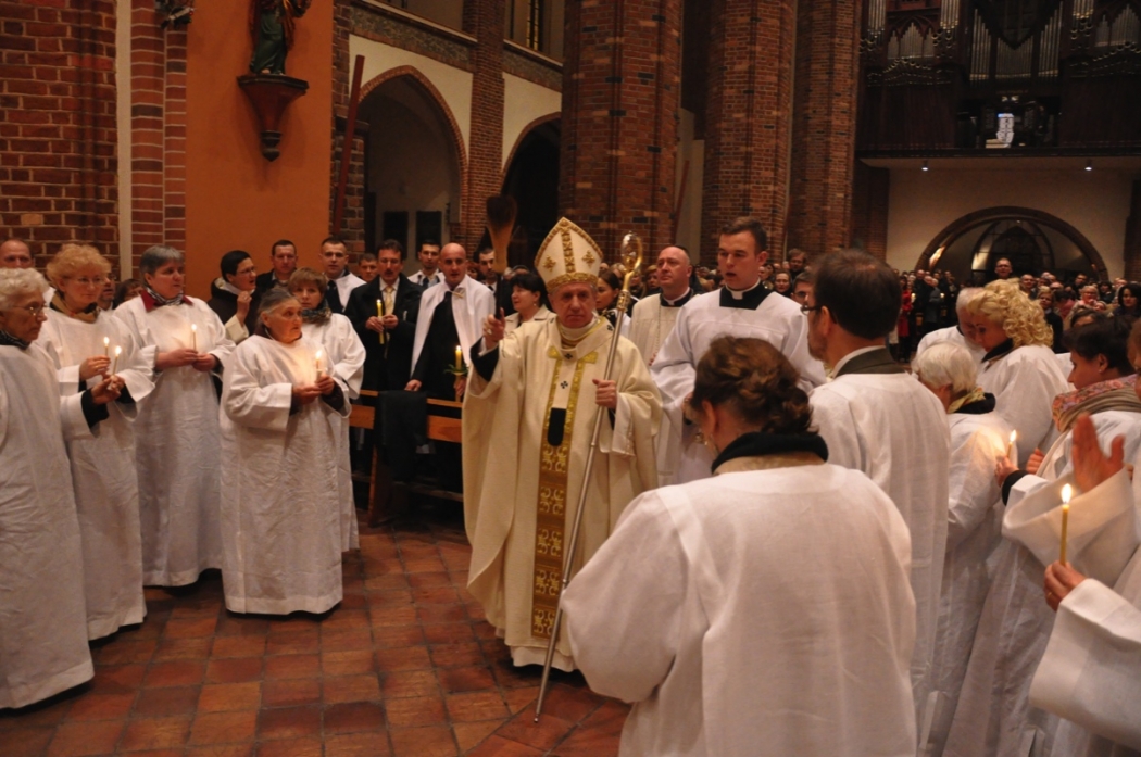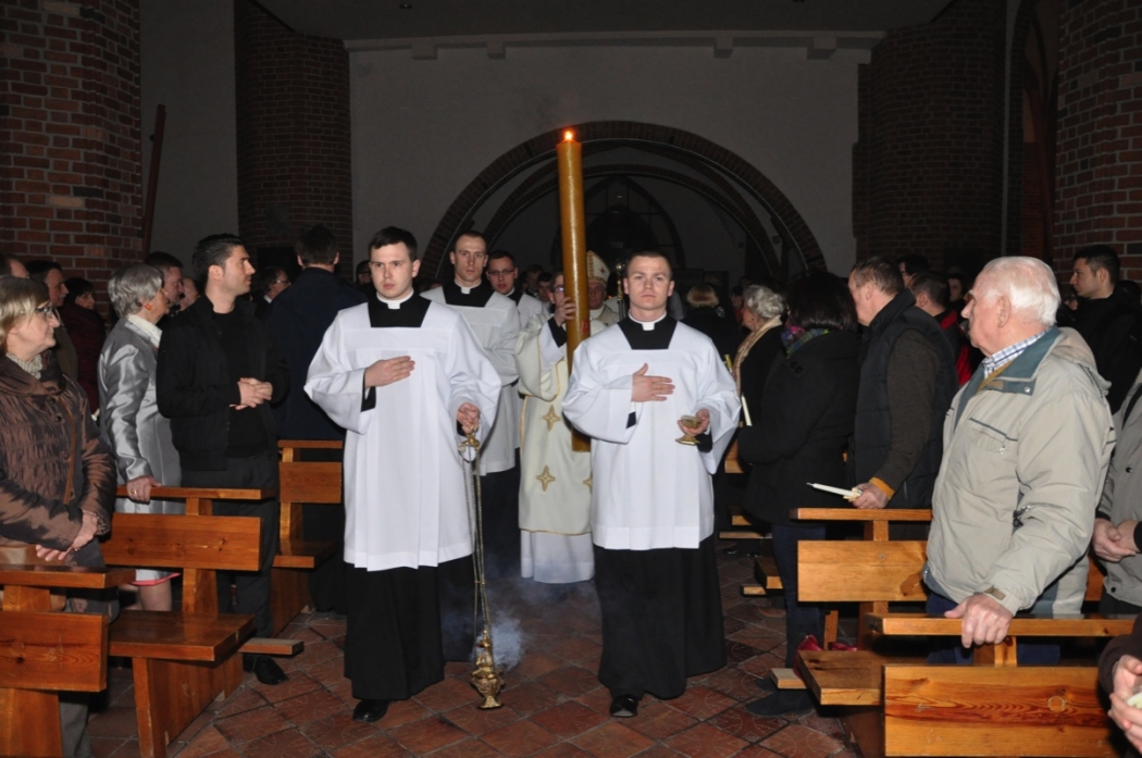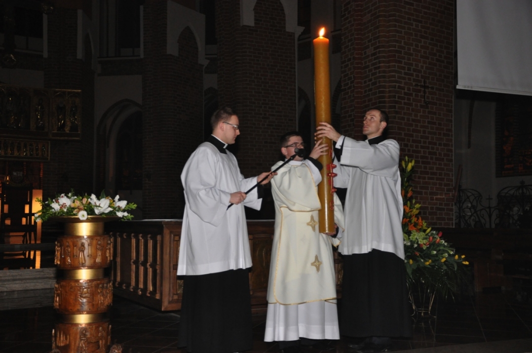 Ksiądz Arcybiskup Metropolita Andrzej Dzięga przewodniczył uroczystej nocnej liturgii Wigilii Paschalnej, która rozpoczęła się o godz. 21.00 w Bazylice Archikatedralnej w Szczecinie. Podczas liturgii 7 dorosłych katechumenów przystąpiło do sakramentów Chrztu i Bierzmowania oraz po raz pierwszy przyjęli Komunię Świętą. Również najstarsza szczecińska wspólnota Drogi Neokatechumenalnej uroczyście zakończyła wszystkie etapy formacji Drogi. Celebrację Wigilii Paschalnej zakończyła, o godz. 1.00, procesja rezurekcyjna.