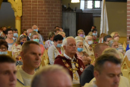 Abp Andrzej Dzięga przypomniał, w jak szczególnym czasie przychodzi nam świętować czas zakończenia żniw. Mimo pandemii, mimo dotkliwej w okresie wiosennym suszy, udało się zebrać plony nie gorsze od ubiegłorocznych. Pan Bóg wysłuchuje naszych próśb i mamy Mu naprawdę za co dziękować – mówił metropolita. W swym słowie odniósł się także do współczesnej sytuacji naszego kraju, w którym, dzięki ofiarności obrońców odradzającego się państwa w początkach lat 20. ubiegłego wieku, a także orędowników powrotu wolnej Polski skupionych wokół idei „Solidarności” z przełomowego roku 1980, możemy dziś w poczuciu wolności i bezpieczeństwa uprawiać rolę, siać i zbierać plony ziemi. To wielki Boży dar dla nas wszystkich. Abp Dzięga w trakcie śpiewu Litanii loretańskiej do Matki Bożej pobłogosławił wszystkie wieńce dożynkowe – symbole rolniczego trudu i błogosławienia Boga za dar chleba. Podczas liturgii wierni kierowali do Boga prośby o błogosławieństwo dla wszystkich pracujących na roli oraz o urodzaj na polskiej ziemi. Prosili także, by rządzący naszym krajem podejmowali decyzje wypływające z głębokiej troski o dobro ojczyzny.