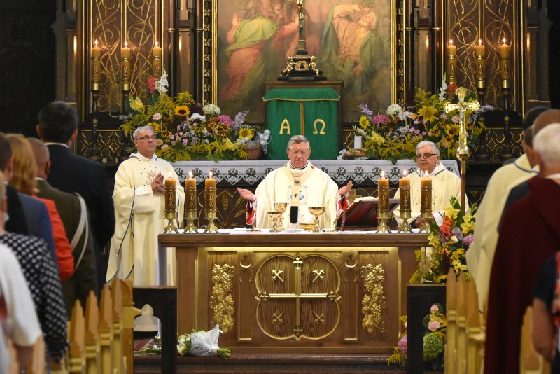 Uroczystą Mszę Świętą dziękczynną za plony, sprawowaną w kościele pw. Przemienienia Pańskiego pod przewodnictwem abp. Andrzeja Dzięgi w asyście wielu księży, poprzedziła prezentacja wieńców dożynkowych, przygotowanych z tegorocznych zbóż, owoców, ziół i kwiatów przez rolników, a także – co ciekawe – działkowców, którzy również pragną w ten sposób dziękować Bogu za dar zbiorów, a rolnikom za ich ciężką pracę.