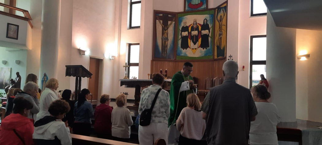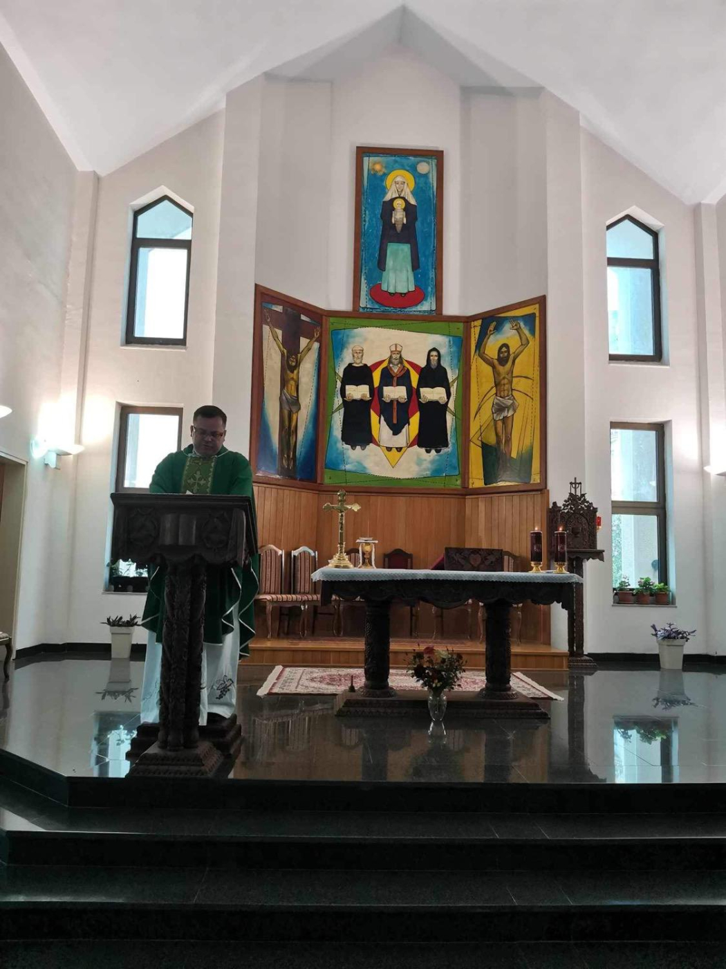 Kolejnym ważnym słowem jakie usłyszeliśmy podczas kazania naszego ks. Pawła było wyjaśnienie co znaczy być ubogim – to być blisko Boga. W życiu duchowym często doświadczamy trudności i musimy być tego świadomi, dlatego usłyszeliśmy też zachętę aby do Kościoła przychodzić wcześniej, nie na ostatnią chwilę, stanąć przed Panem Bogiem i powiedzieć JESTEM. Aby dać czas sobie i Panu Bogu, żeby usłyszeć głos Pana. Będąc w przestrzeni ciszy wystarczy powiedzieć "Panie. Jestem. Ty mnie przytul i bądź ze mną w każdej chwili mojego życia". Pan Jezus Zmartwychwstały chce działać w naszym życiu, każdy z nas usłyszał kiedyś słowa Pana Jezusa: „Pójdź za Mną”. Te słowa usłyszeli także święci Cyryl i Metody, spotykając na pielgrzymim szlaku ślady działalności tych świętych, poznając ich bliżej uświadomiliśmy sobie, że są dla nas wspaniałym wzorem i przykładem życia w świętości.