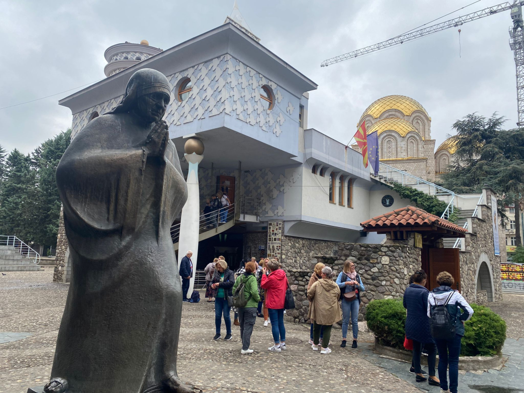 Od pierwszych chwil na bałkańskiej ziemi poznawaliśmy historię życia Matki Teresy - jej miejsce urodzenia, wychowania, traktowania tej wspaniałej niewiasty przez naród macedoński i albański, widzieliśmy jej rzeczy osobiste, wiele zdjęć, pomników upamiętniających niską wzrostem , a tak wielką sercem laureatkę Pokojowej Nagrody Nobla.